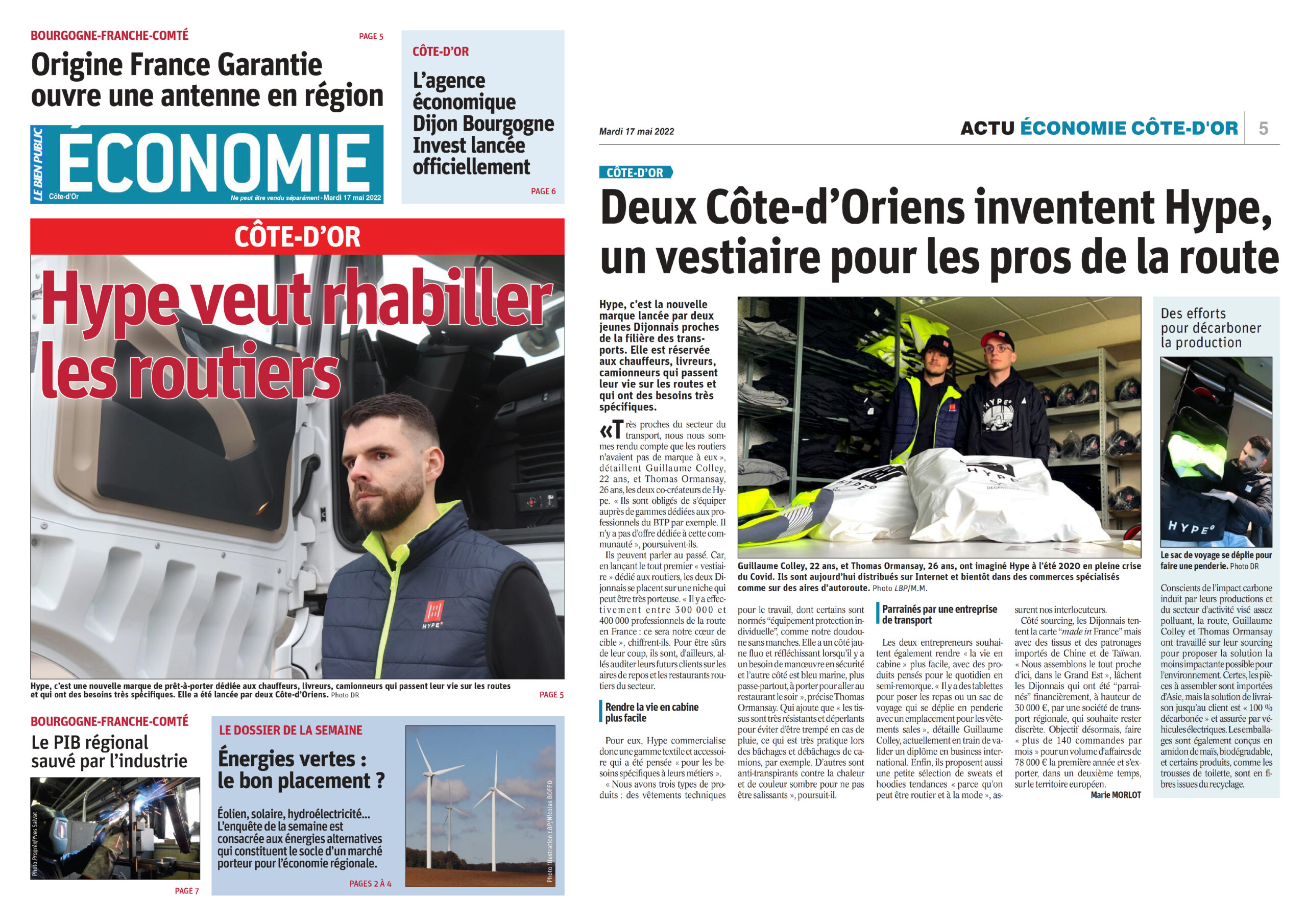Dans ce reportage du journal le Bien Public paru mardi 17 mai 2022, nous dévoilons les dessous du lancement de Hype et notre volonté de développer une mode utile.